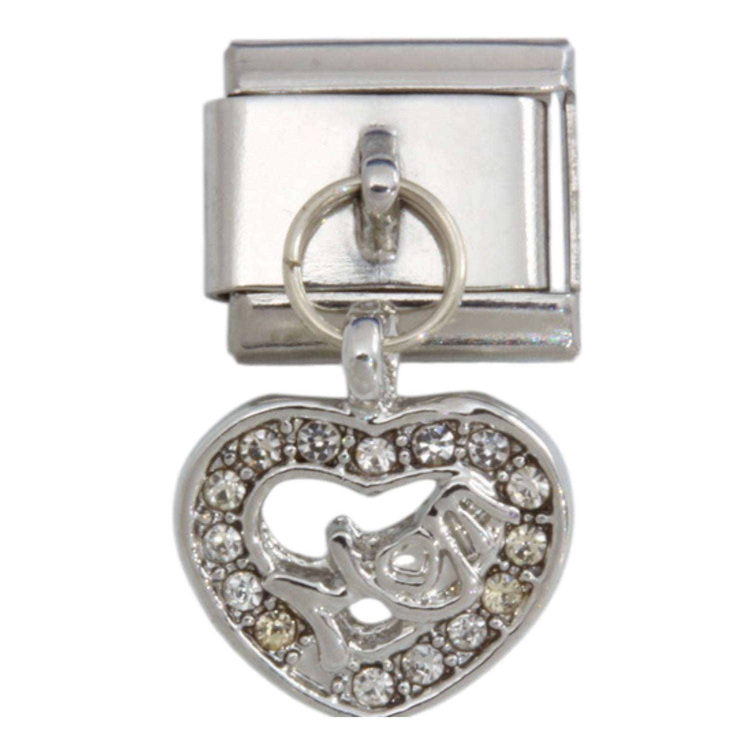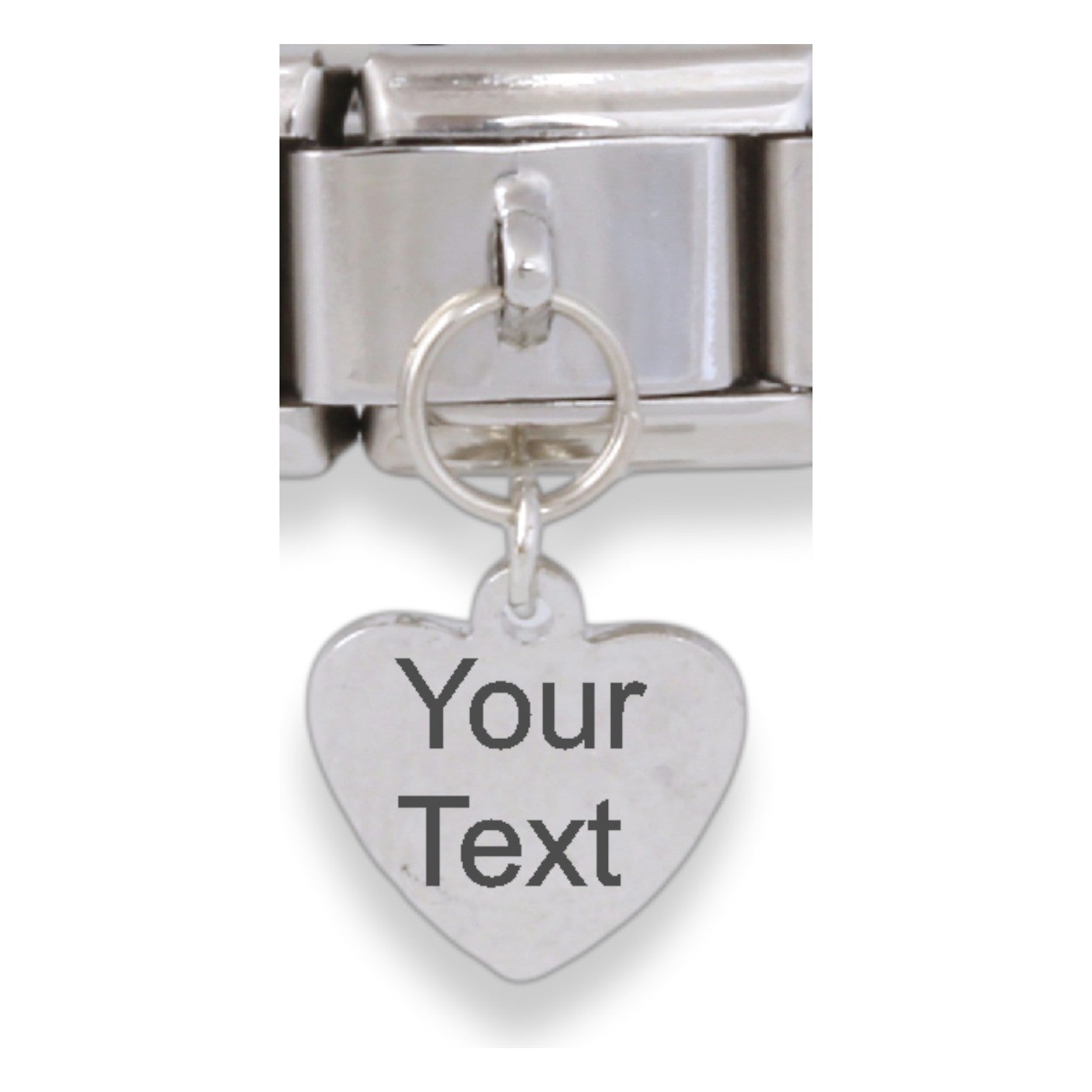 9mm Engraved Heart Dangle Italian charm (Click to Personalize) -