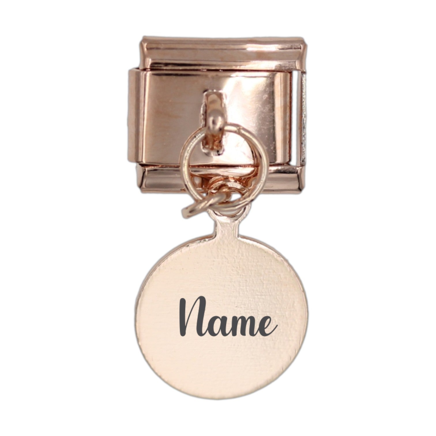 9mm Engraved Dangle Rose Gold Italian charm (Click to Personalize) -