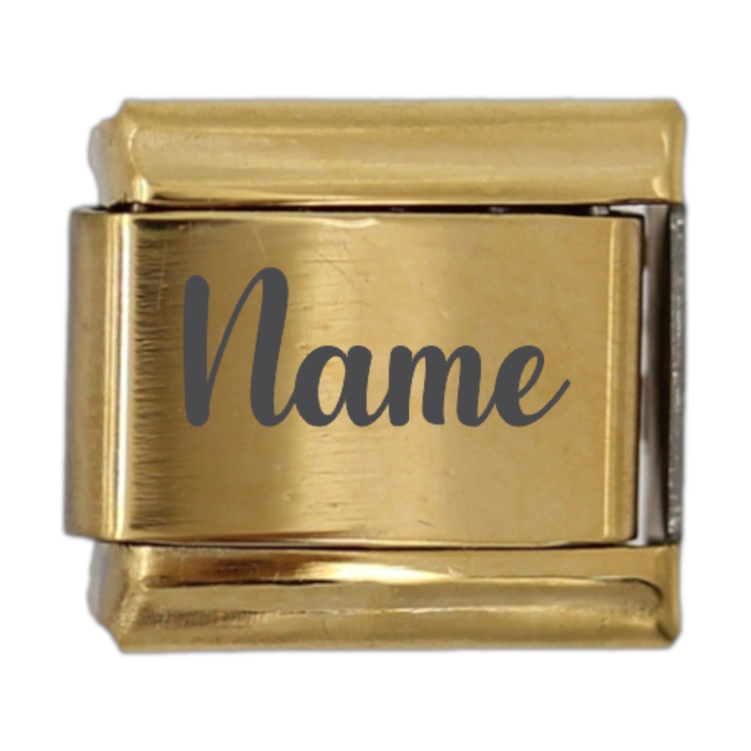 9mm Engraved Name/Word Italian charm (Gold edge) 9mm Engraved Name/Word Italian charm (Gold edge)