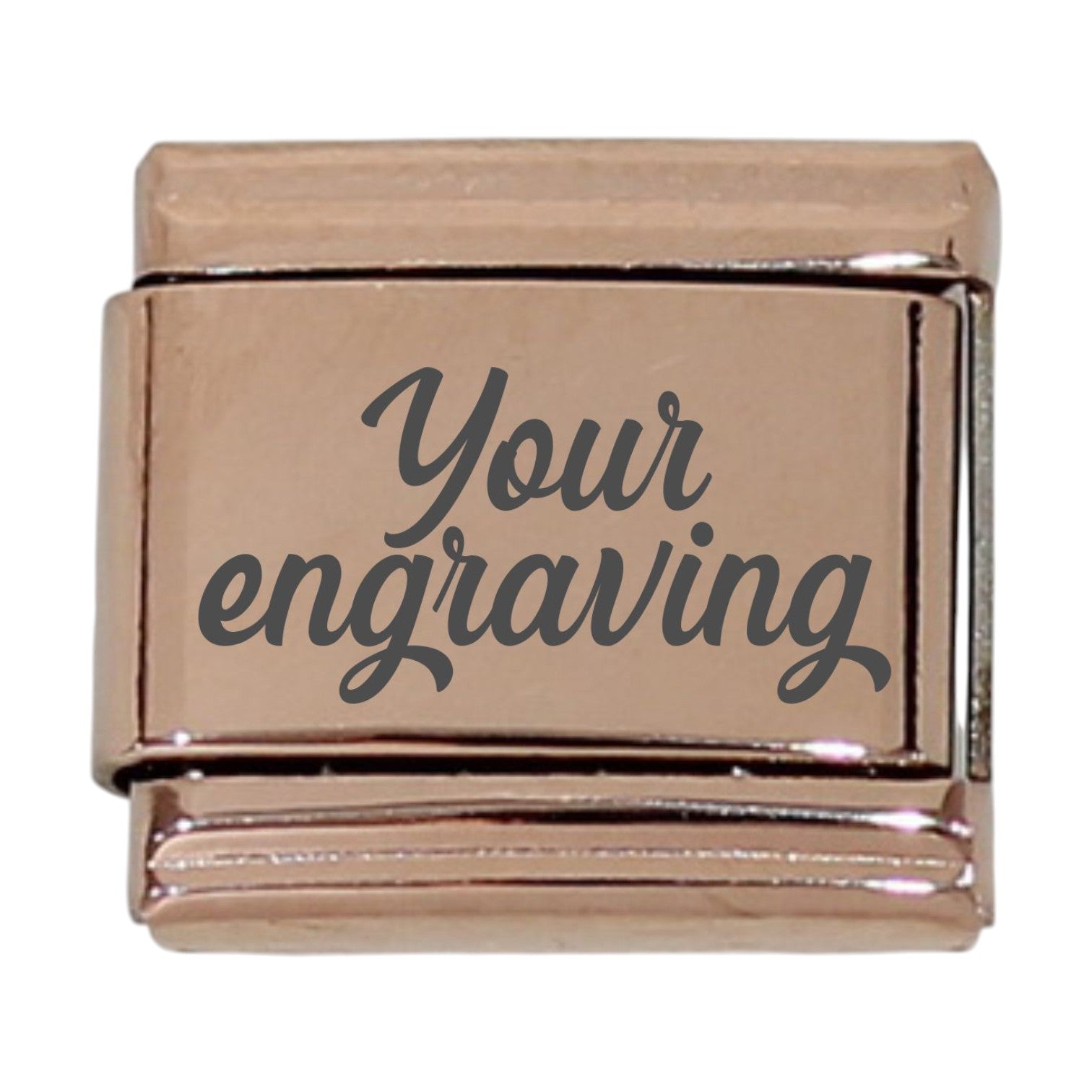 9mm Rose Gold Engraved Personalized Superlink Italian charm 9mm Rose Gold Engraved Personalized Superlink Italian charm