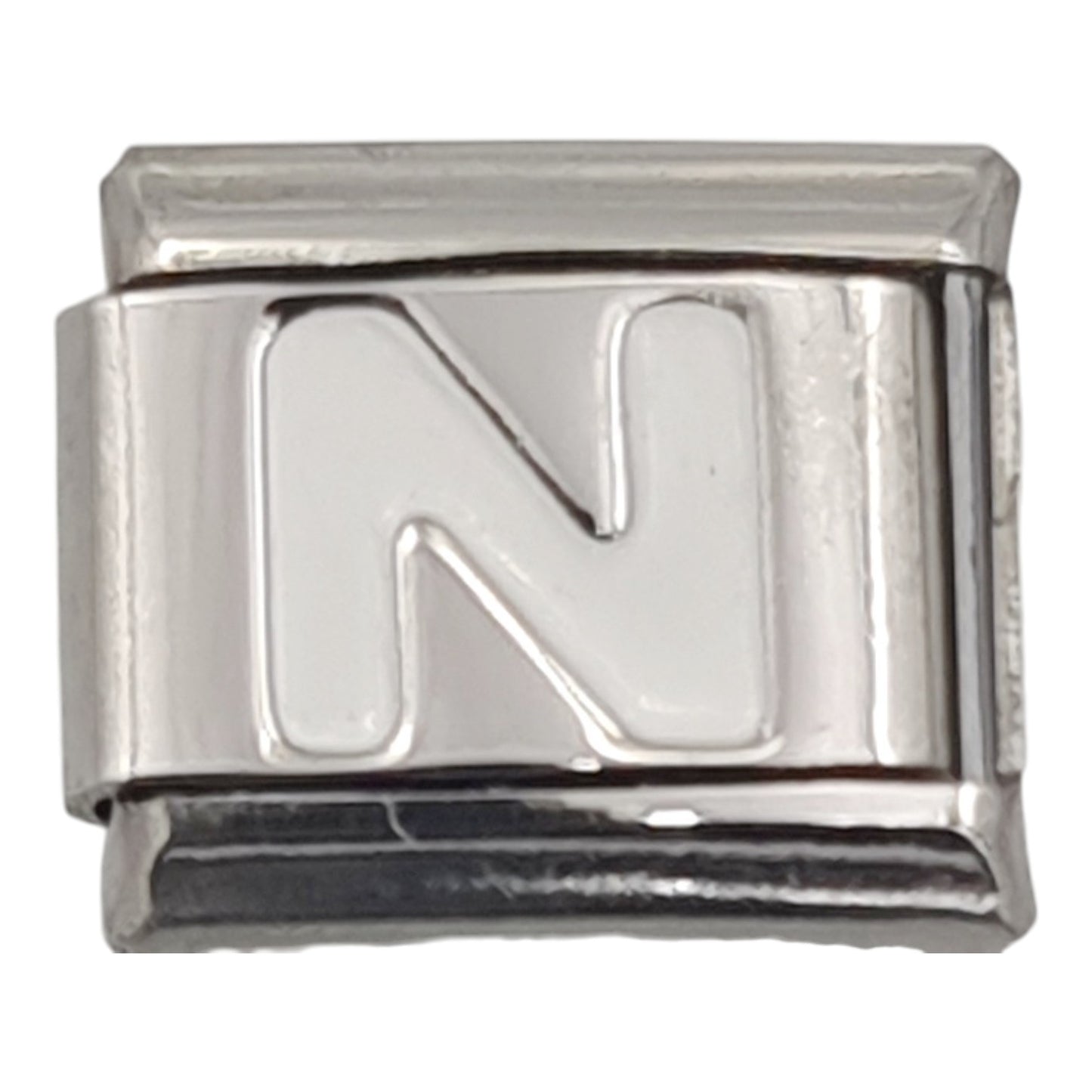 White Letter N enamel charm.