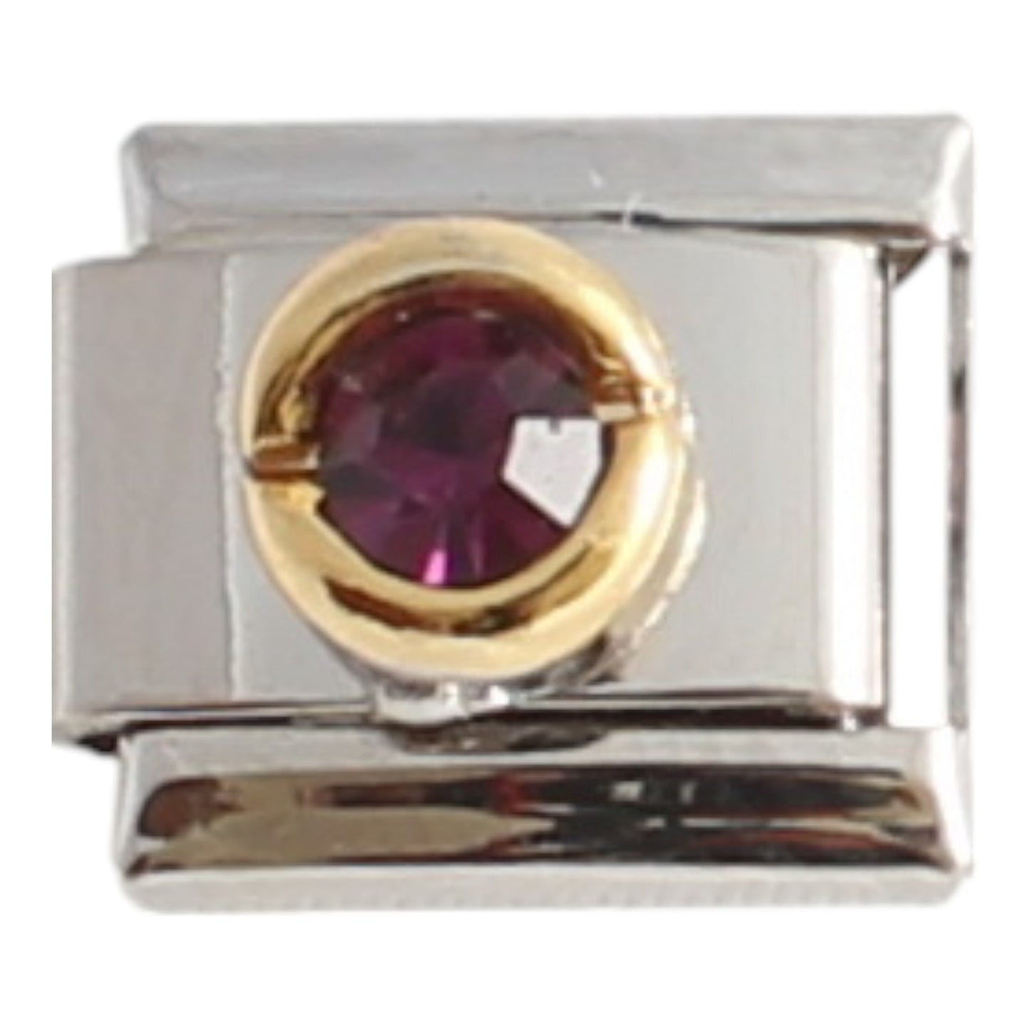 Dark purple glass stone on a stainless steel Italian charm to fit the 9mm Italian charm bracelet.