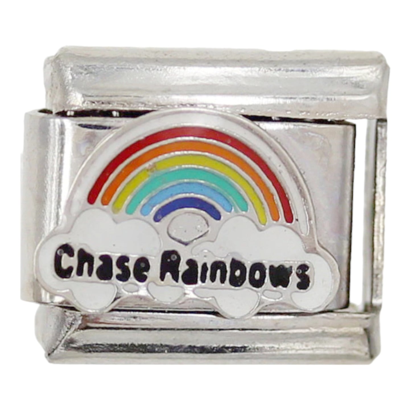 Chase Rainbows 9mm Charm. Enamel & or metal charm is soldered onto a stainless steel Italian charm. This charm fits any 9mm Italian charm bracelet.