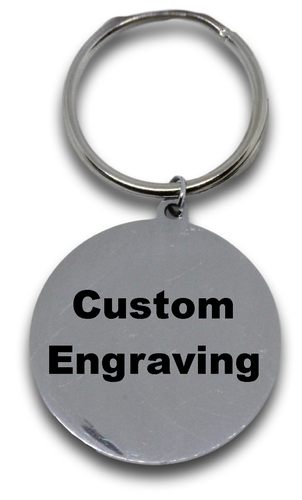 Stainless steel round engraved keyring, personalized with text of your choice.
