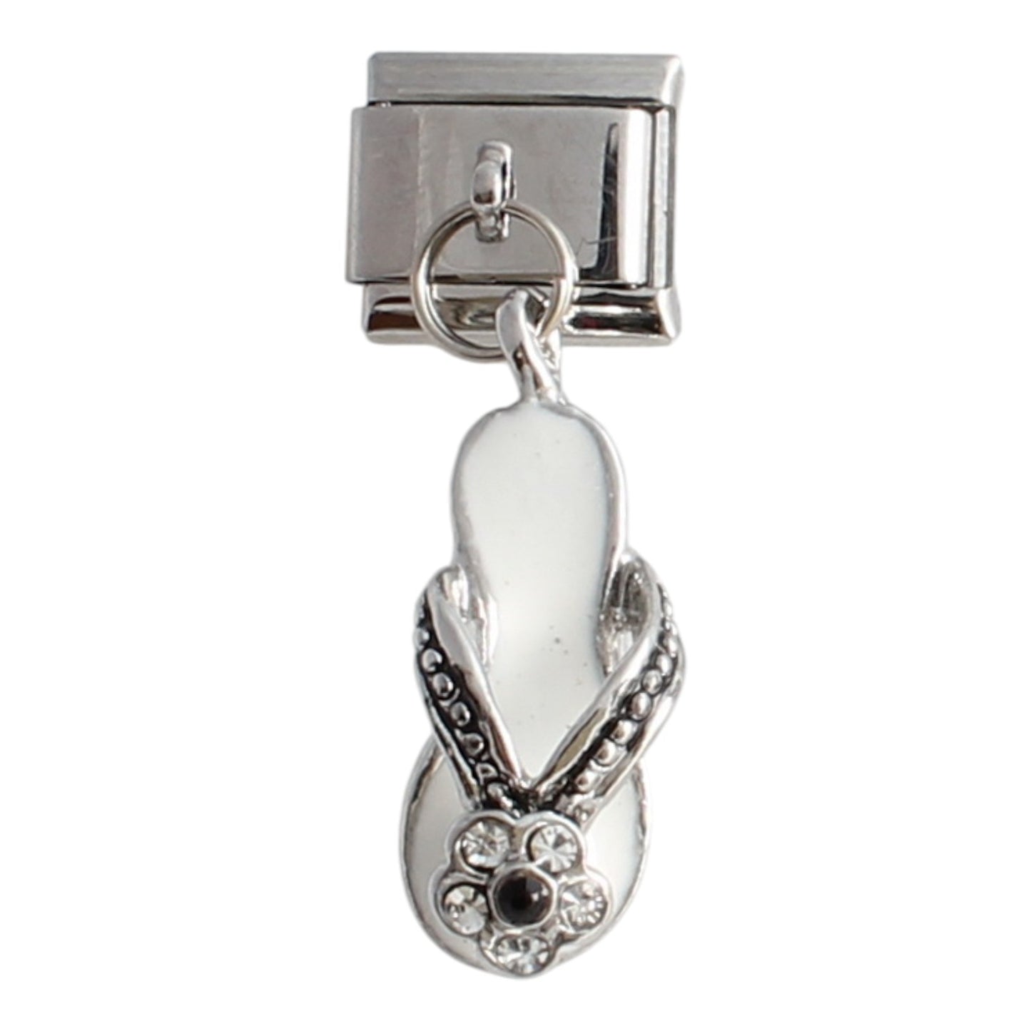 This gorgeous white sandal dangle charm fits any 9mm Italian charm bracelet