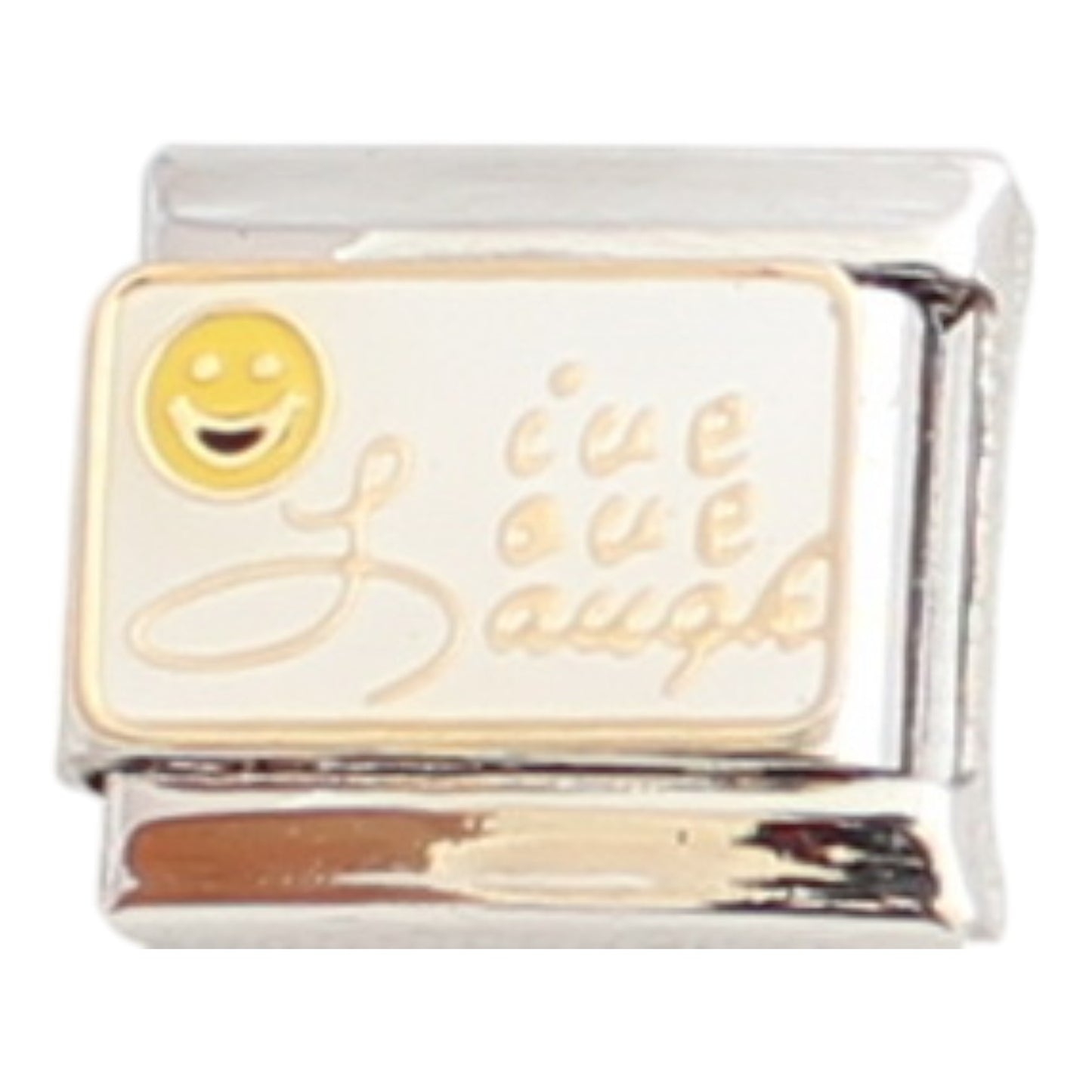 Live Love Laugh enamel &or metal charm is soldered onto a stainless steel Italian charm. This charm fits any 9mm Italian charm bracelet