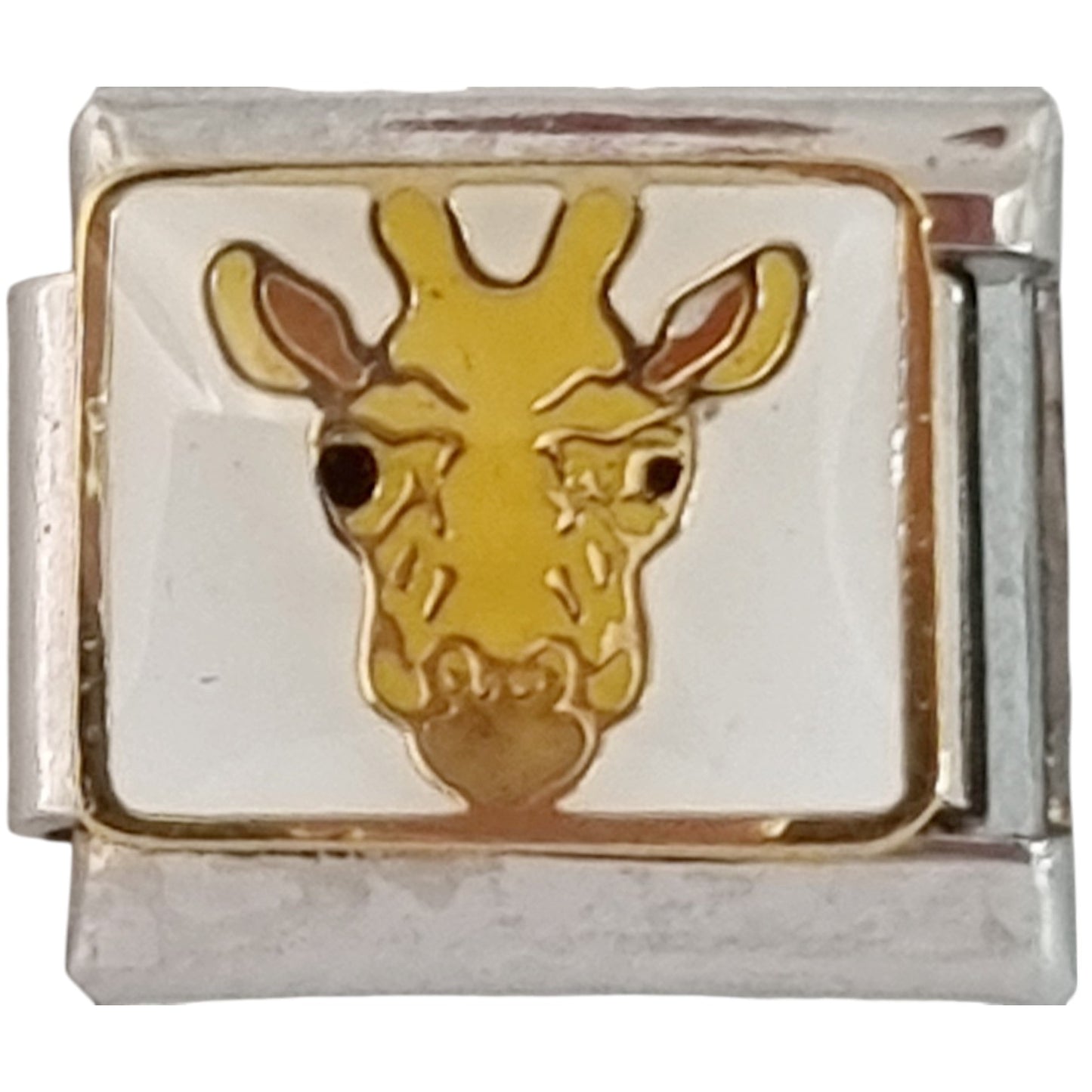 Giraffe 9mm Charm. Enamel & or metal charm is soldered onto a stainless steel Italian charm. This charm fits any 9mm Italian charm bracelet