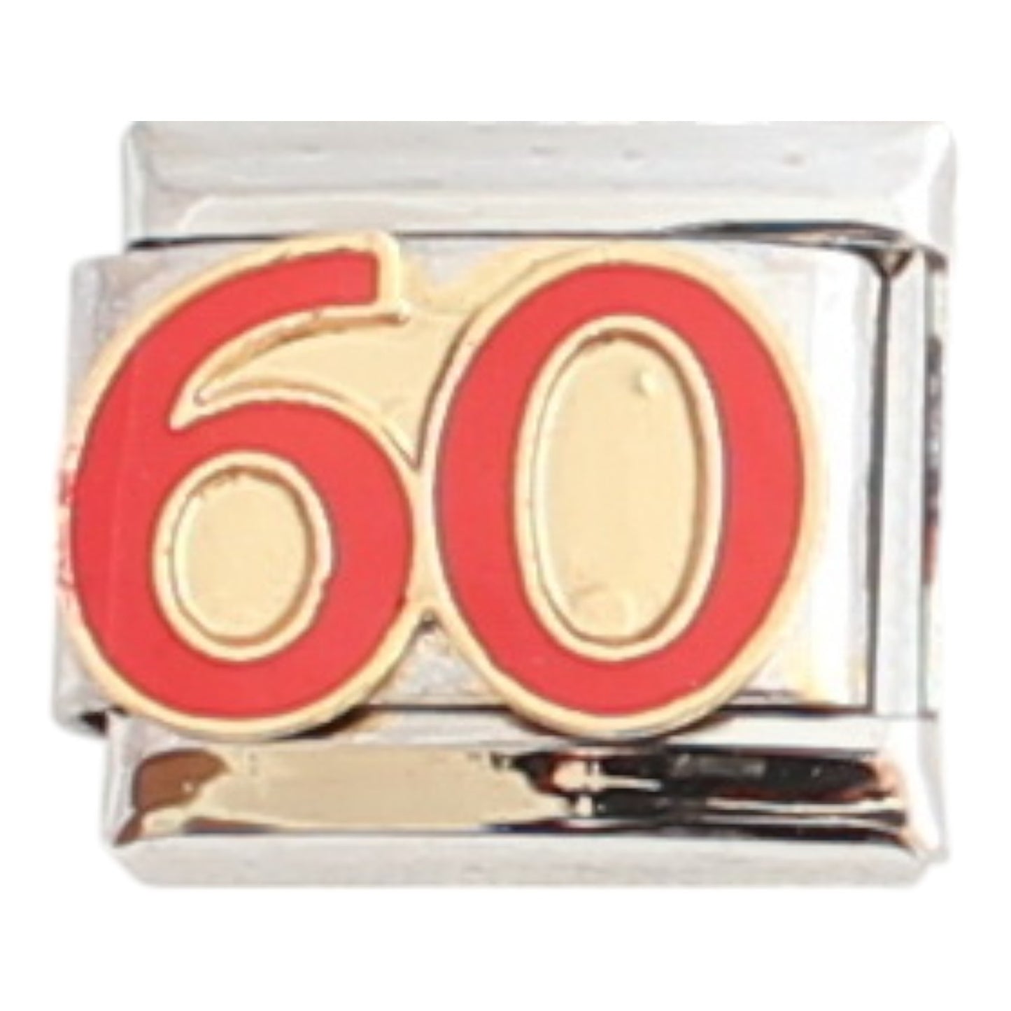 Number 60 enamel &or metal charm is soldered onto a stainless steel Italian charm. This charm fits any 9mm Italian charm bracelet
