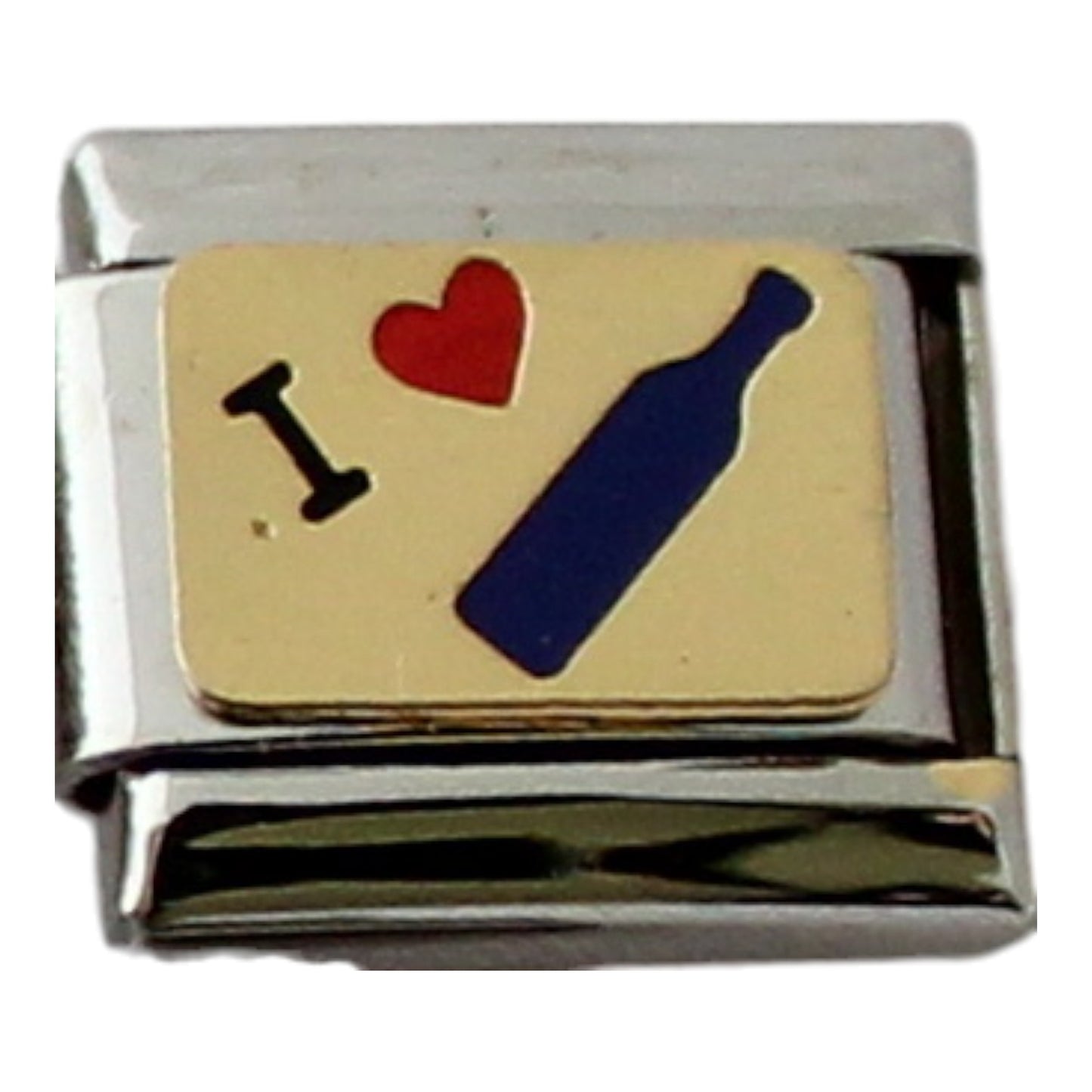 I Love Wine enamel &or metal charm is soldered onto a stainless steel Italian charm. This charm fits any 9mm Italian charm bracelet