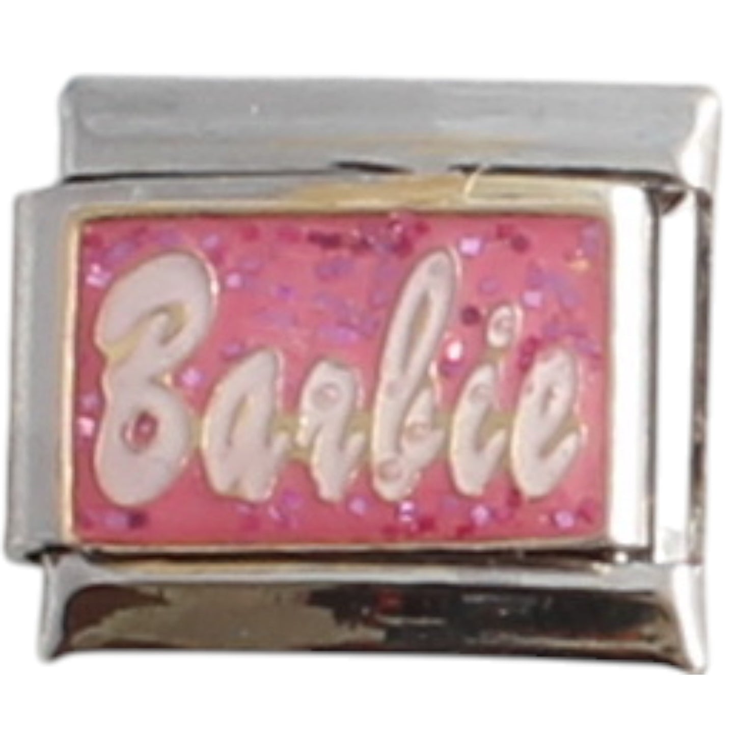 Barbie enamel &or metal charm is soldered onto a stainless steel Italian charm. This charm fits any 9mm Italian charm bracelet