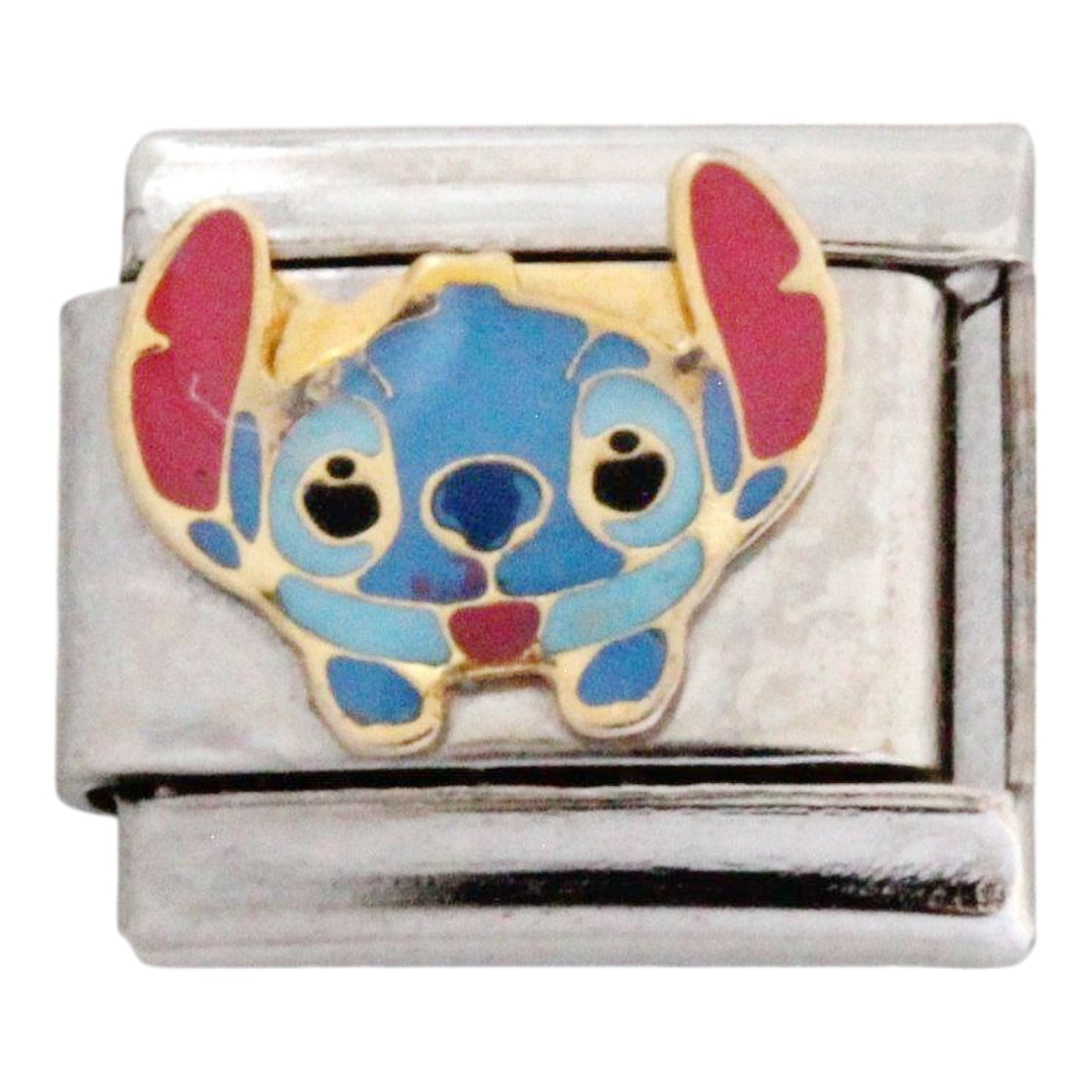 Stitch enamel &or metal charm is soldered onto a stainless steel Italian charm. This charm fits any 9mm Italian charm bracelet