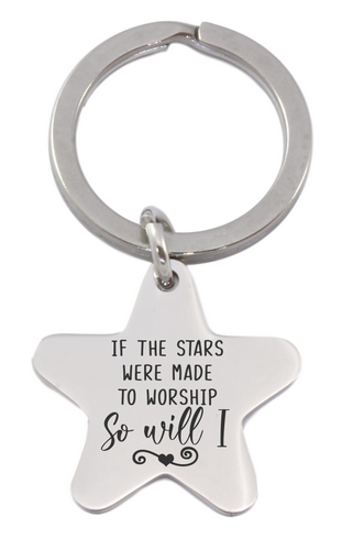 Stainless steel engraved star keyring with optional personalized engraving on the back.