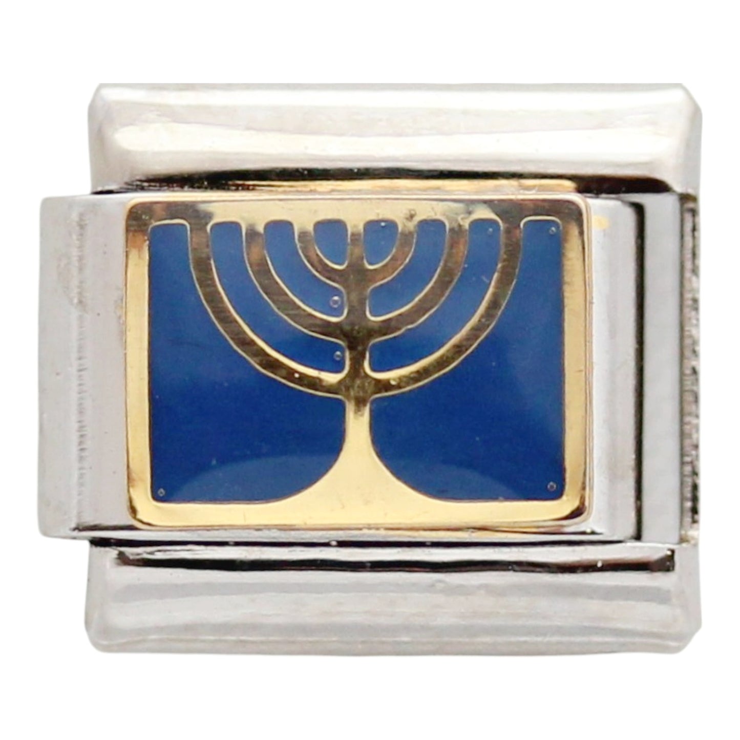 Menorah enamel &or metal charm is soldered onto a stainless steel Italian charm. This charm fits any 9mm Italian charm bracelet