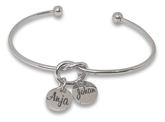 Infinity Knot Bangle with 2 Engraved Charms
