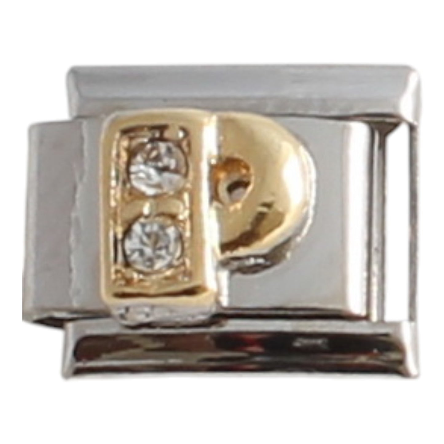 CZ Letter P enamel &or metal charm is soldered onto a stainless steel Italian charm. This charm fits any 9mm Italian charm bracelet