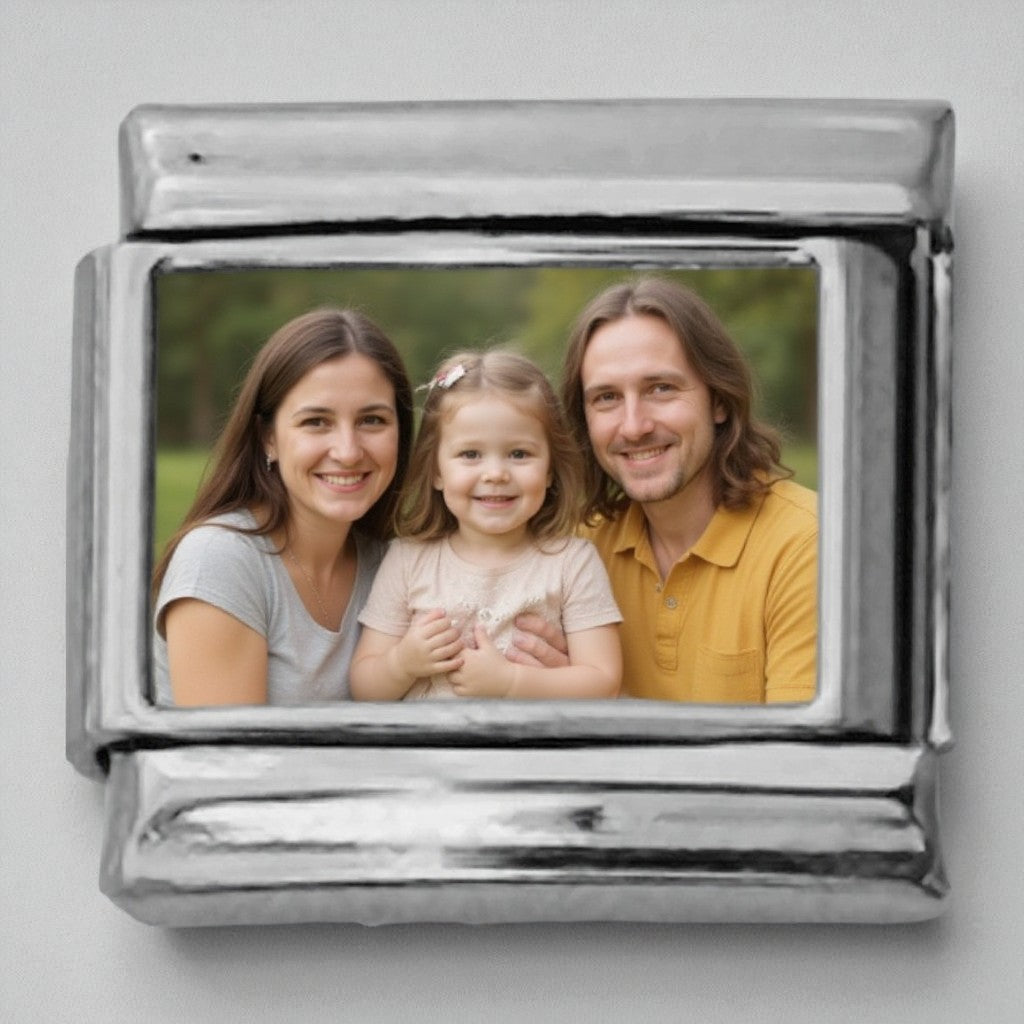 Turn your precious photos into unique jewellery with this rectangular photo charm to fit the 9mm Italian charm bracelet.